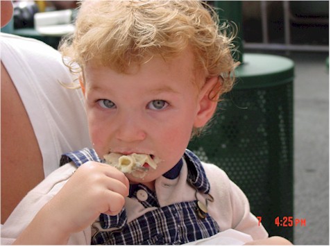 Another shot for the grandparents...Noam enjoying lunch in Anchorage.
