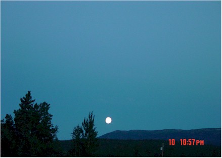 Just one picture today...the moon rising over Whitehorse. |