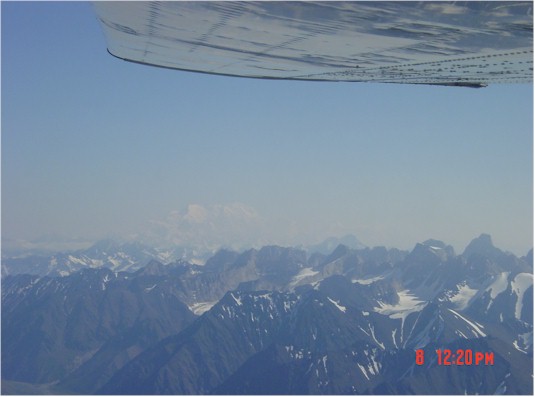 Crossing the Alaska Range.  In the distance, you can see Mt. McKinley and Mt. Foraker--about 75 miles away.