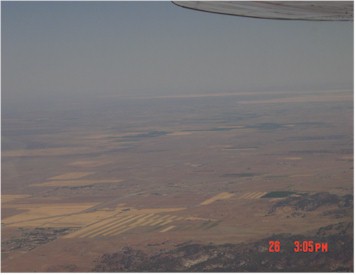 The mountains just stop and the San Joaquin Valley begins. Irrigation brings the valley to life. |